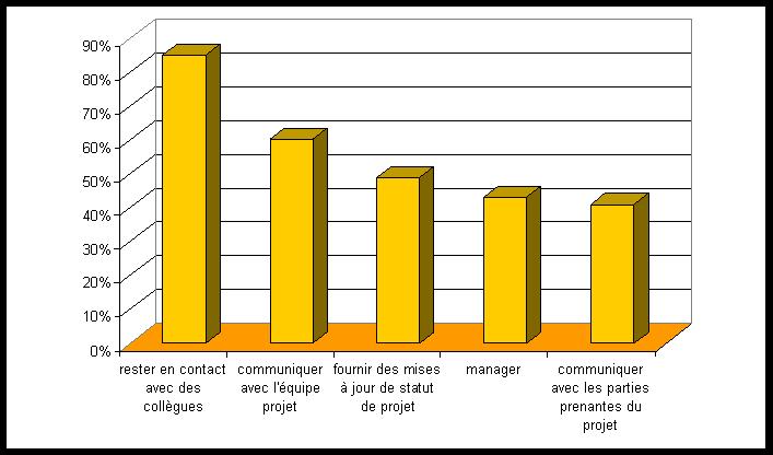 Les médias sociaux sont maintenant plus répandus en gestion de projet. En 2010, Mme Harrin a conduit une enquête indépendante avec plus de 240 personnes venant de 32 pays pour découvrir comment les gestionnaires utilisaient les outils des médias sociaux pour collaborer avec leurs collègues. Voici les principaux résultats ;