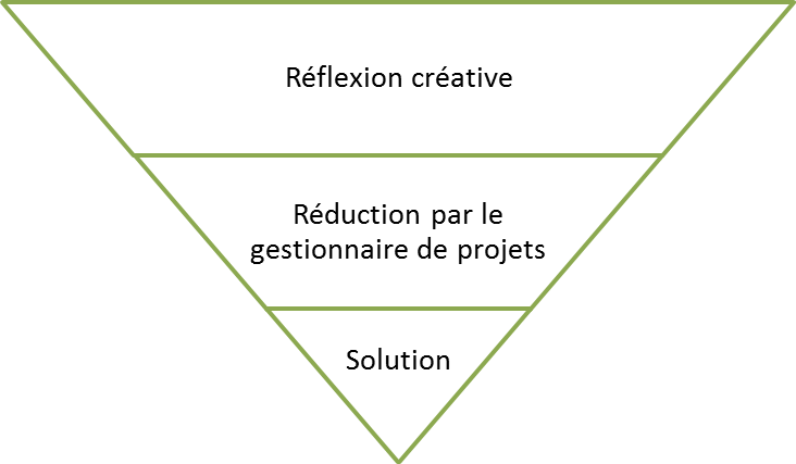 Les gestionnaires de projets souvent perçus (à tort) comme des opposants à la créativité et non ses alliés. Ce sont eux qui rassemblent les ressources et leur attribuent des tâches selon des objectifs, un budget et un échéancier précis. Ils déterminent donc les contraintes avec lesquelles l’équipe créative doit composer. On imagine souvent la créativité comme le résultat d’une liberté totale au sein de laquelle l’esprit inventif peut pleinement s’émanciper. Selon cette vision, l’équipe créative créerait donc sans limite, produisant des idées grandioses qui seront par la suite réduites à un format exécutable selon les contraintes établies par le gestionnaire de projet.
